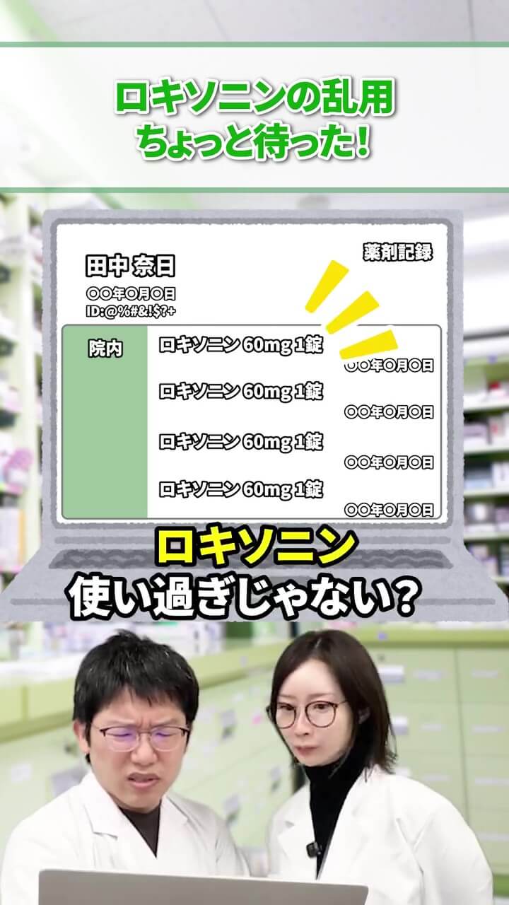 慢性的な頭痛があるため、ロキソニンを飲んでいる患者さん。使用歴を見ると、月に15日ほどロキソニンを使っている上、3カ月以上も同じような処方が続いています。
